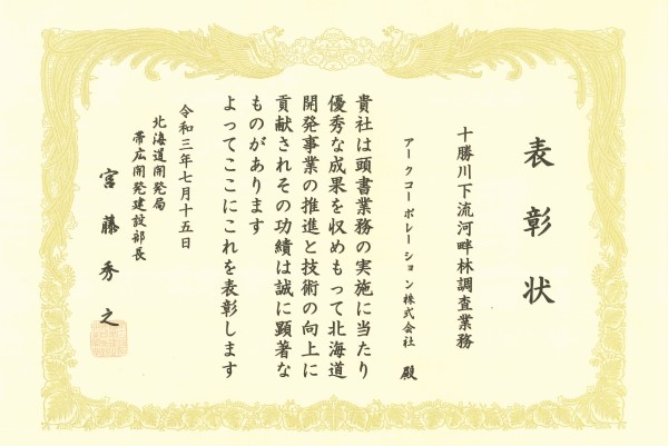 2022年 帯広建設管理部優秀現場代理人等表彰